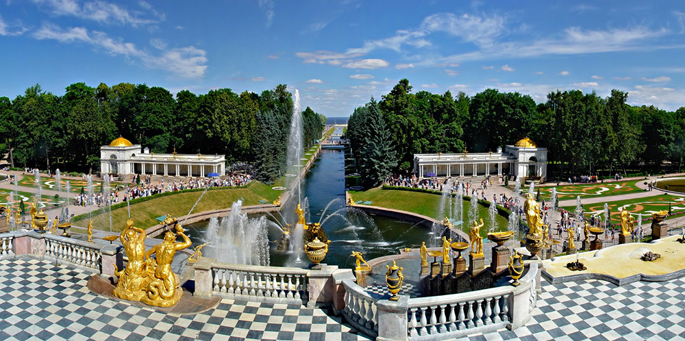 Дворац са јединственим парком и каскадним фонтанама постао је споменик победи Русије над Шведском у Северном рату (1700-1721.).