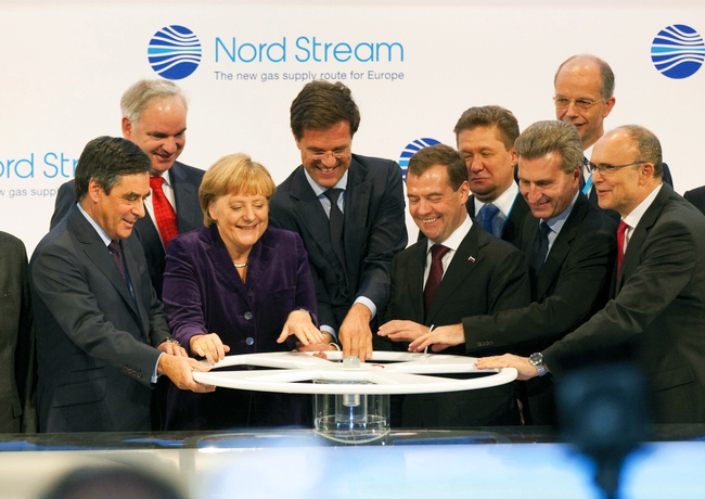 Главни велики бели вентил „Северног тока“ - на свечаности у Лубмину - први су заједно симболички окренули руски поредседник Дмитриј Медведев и немачка канцеларка Ангела Меркел, а онда су руке на њега положили и француски премијер Франсоа Фијон и холандски премијер Марк Руте