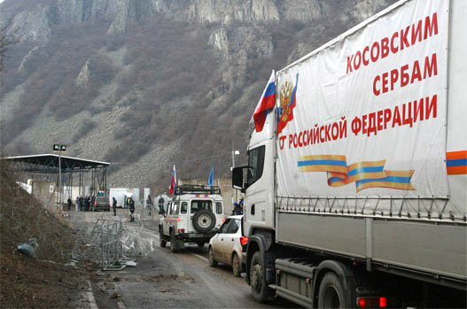Пријатељи «демократске Србије» из Брисела спречавају њен пролаз, али званична Москва подржава свог амбасадора у Србији Александра Конузина који је одбио све три уцене – и да конвој прати полиција Еулекса, и да усмери колону на прелаз Мердаре под шиптарском контролом и да га врати назад.