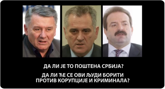 3. ТЕКСТ У СПОТУ: Коалиција, Оптужен да је оштетио државу за 60 милиона евра. Да ли је то поштена Србија? Да ли ће се ови људи броити против корупције и криминала? Избор за бољи живот?