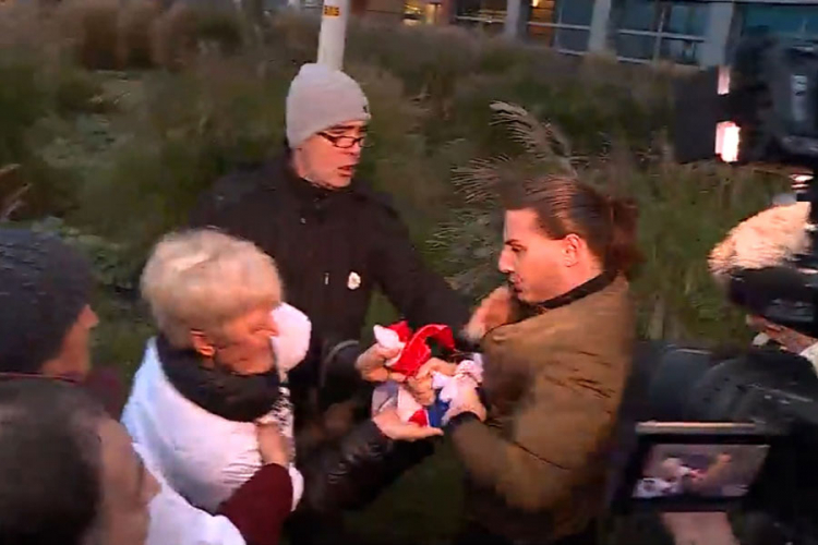 Дошло је до гуркања, председница тог удружења Бакира Хасечић покушала је да отме заставу од младића, убрзо је интервенисао један холандски полицајац који је младића удаљио од скупа.