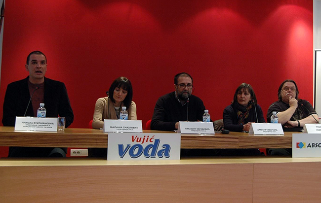 Никола Вукомановић - председник Синдиката и штрајкачког одбора ТВ Авала, Љиљана Смајловић - председница УНС, Вукашин Обрадовић- председник НУНС, Драгана Чабаркапа - председница Синдиката новинара Србије, Роберт Немечек