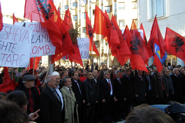 Са зграде општине у Прешеву скинута је застава државе Србије, а са скупа у центру града поручено је да би Албанци требало да добију иста права, која су гарантована Србима по Ахтисаријевом плану.