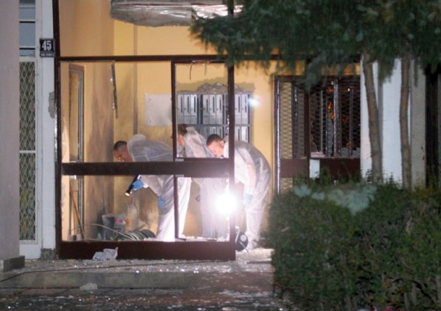 Од детонације су попуцала стакла на улазним вратима зграде.