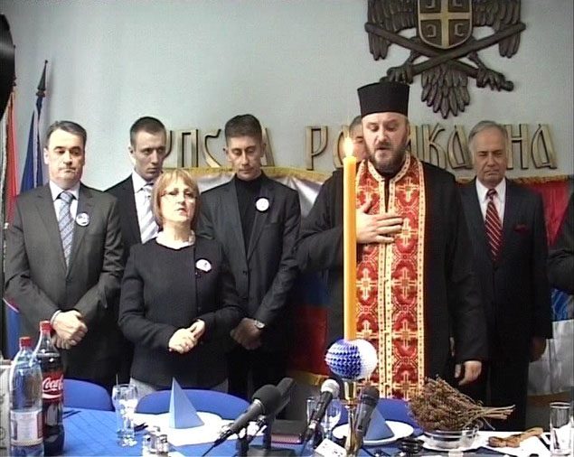 Сам обред био је прекинут због Шешељевог јављања из Хага, па потом настављен, а свештеник земунске цркве Покрова пресвете Богородице, Бранко Зелен, своје обраћање искористио је за отворену и досад незабележену политичку агитацију једног представника цркве за СРС.