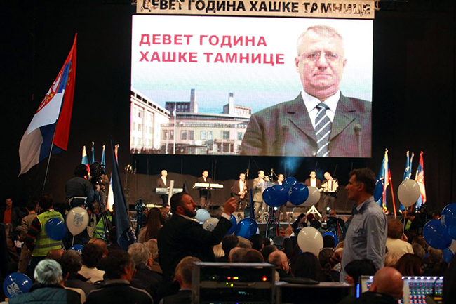 Човечанство зна да је хашки трибунал непријатељ Срба, да нам нису пријатељи Америка, Велика Британија, НАТО и Европска унија који нам отимају Косово - рекао је шеф тима за Шешељеву одбрану Зоран Красић пред пуном београдском Ареном.
