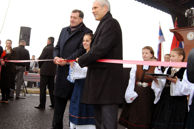 Тадић је са председником РС Милорад Додиком у месту Чатрња свечано пустио у саобраћај деоницу Маховљани – Градишка дугу 26,5 километара.