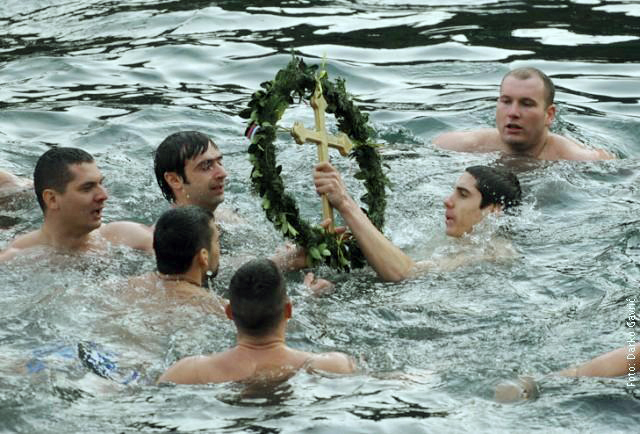 Хладан Врбас није био препрека за четрдесетак момака који су запливали до крста.