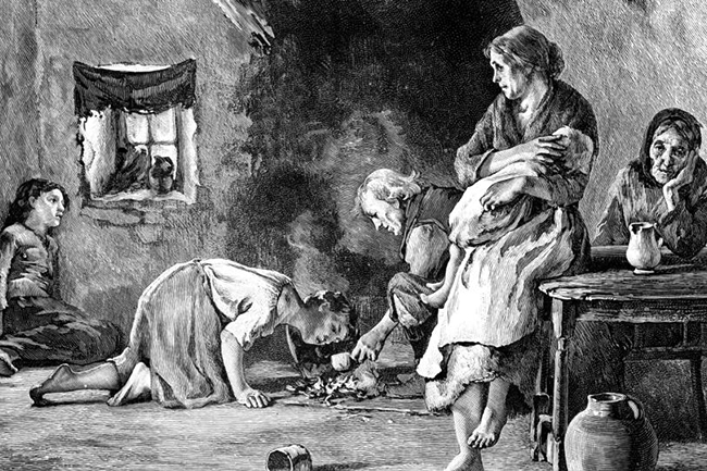 Ирци су се, средином 19. века, свели на најамне сељаке. Радили су за колонијалног велепоседника, а заузврат су користили комад земље за сопствене потребе. Велепоседници су производили жито и стоку за британско тржиште, а сељаци су на малим парцелама гајили кромпир за себе.