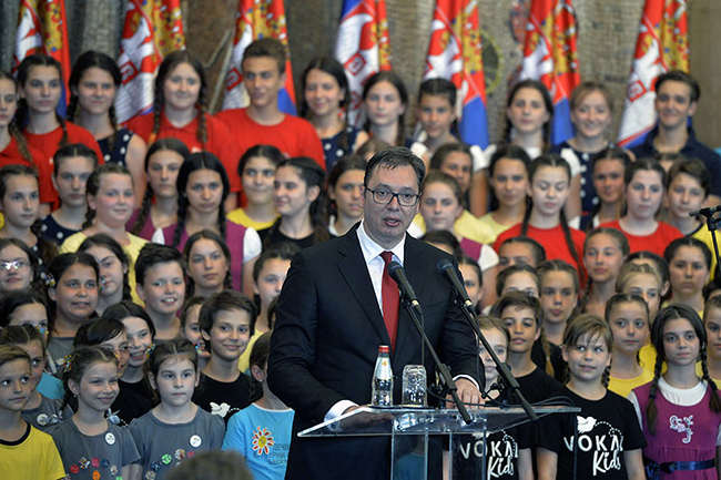 ПОСЛАНИЦИ Скупштине Србије данас су расправу о изменама Закона о министарствима искористили и да говоре о пријему који је приредио председник Србије Александар Вучић поводом ступања на ту дужност, па су посланици власти рекли да је та манифестација показала да је Србија центар света, а опозиција да је - срамота.