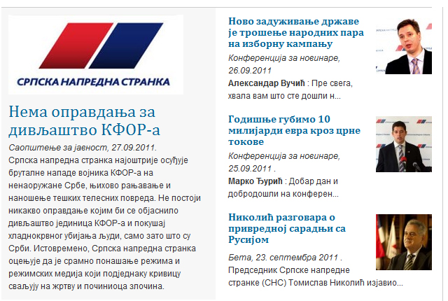 САОПШТЕЊЕ СРПСКЕ НАПРЕДНЕ СТРАНКЕ