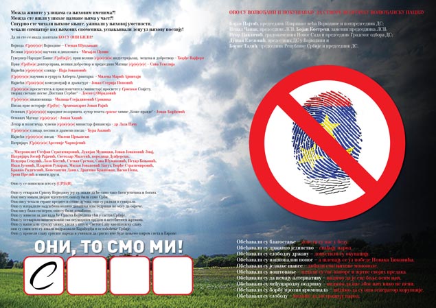 ПОВОДОМ пописа који је у току, на коме су аутономаши и сецесионисти покренули кампању да се грађани изјасне као Војвођани, Двери су широм Северне Србије кренуле у кампању Они, то смо ми, која истиче чија је Војводина и да Српска Војводина Није на реду, залажући се да останемо оно што су били и наши преци - Срби.