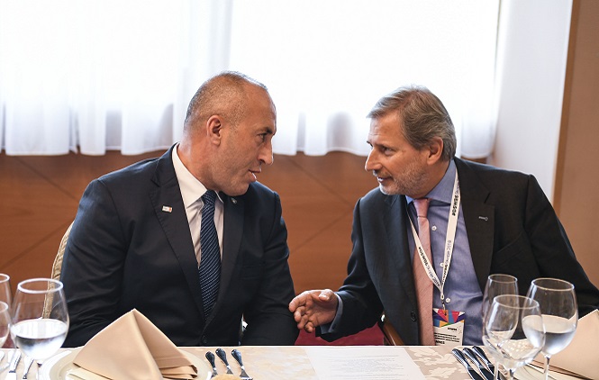„На састанку са комесаром за проширење ЕУ Јоханесом Ханом, поновио сам да је позиција Косова јасна по питању европских интеграција. У том смислу, постигли смо напредак на европском путу и након испуњења критеријума за либерализацију очекујемо брзу одлуку о добијању права на слободно кретање”, написао је Харадинај.