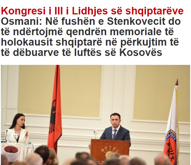 Још је - наступивши на трећем конгресу Лиге Албанаца у свету – најавио да ће том и таквом `холокаусту`бити подигнут `меморијал` поред насеља Станковец.