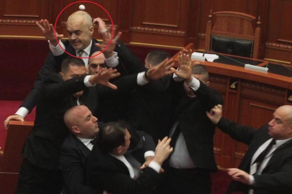 Посланик Демократске партије Ендри Хаса прво је гађао Раму јајетом које се размрљало по његовој кравати што је изазвало реакцију телохранитеља који су јурнули да га заштите. Друго јаје бачено на албанског премијера промашило је циљ.
