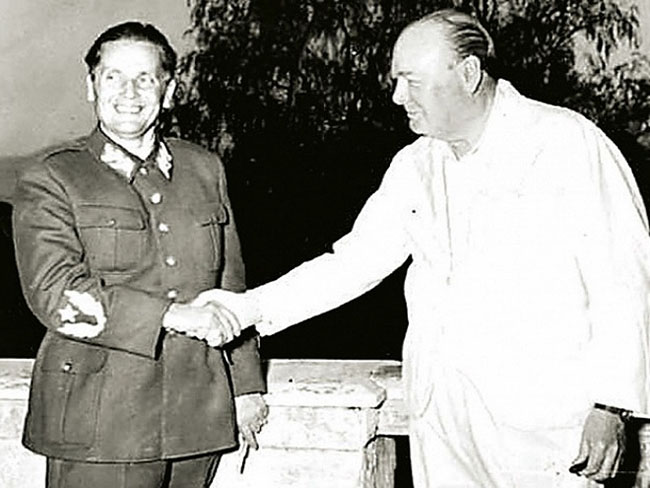ЧЕРЧИЛ: Добро! То може. Дакле, да се припремимо. Данас имамо на талону Србе, и остало то друштво са Балкана. Тај Тито је вођа тог другог дела Срба, који се више скривају по планинама и чекају шта ће бити. Додуше, као и онај други део, чекају и траже од нас оружје и шта све не, као и ова персона. Али, ви треба да знате, Срби су јако незгодни, осветољубиви и пргави. Против њих силом – никако! Видите, Хитлер је кренуо силом, али ипак није ишло. Морао је да мења курс, ангажовао је Нојбахера.