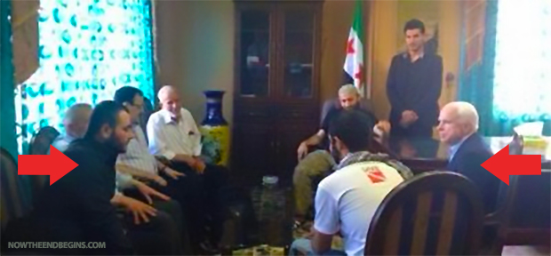 Године 2013. амерички сенатор Џон Мекејн отпутовао је у Сирију да би са противницима легитимне и легалне сиријске власти договорио како да их САД наоружају и дају им подршку у рушењу законитог председника Сирије Башара ел Асада.