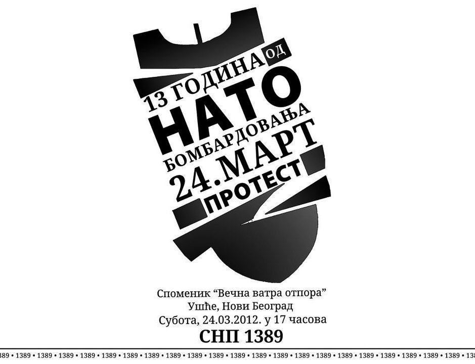 Позивамо Вас на општенародни митинг 24. марта 2012. године поводом 13 година од почетка злочиначке НАТО агресије над нашом, некада сувереном, Отаџбином. Овим скупом желимо да покажемо, како домаћим марионетама са власти, тако и целом свету, да Српски народ није потонуо у апатију, заборавио злочине агресора над недужним цивилима, децом и уништавање нама једине и за нас најлепше земље Србије. Никада нећемо прихватити улазак у НАТО и ЕУ јер би то значило коначан пораз свих вредности које негују грађани Србије.