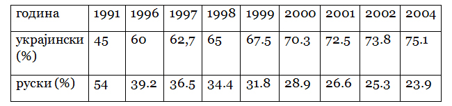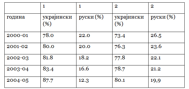 Табела: Украјинизација Комунистичке партије
