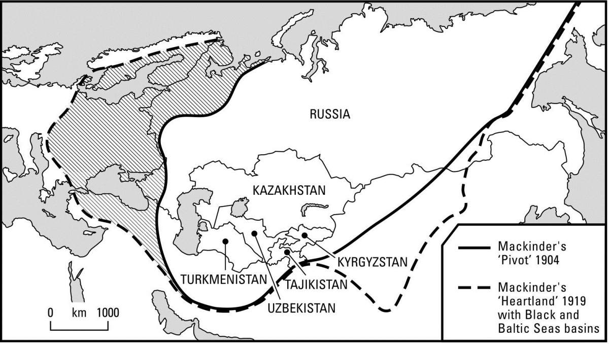 Мапа: Значај источноцентралноевропског појаса у окруживању Русије према Макиндеру