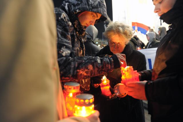 Свеће и кандила положени испред зграде Генералштаба наставили су да горе.