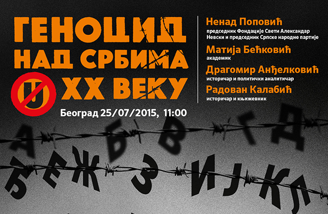 - Председник СНП Ненад ПОПОВИЋ: Нити имамо пописане жртве, нити смо им подигли споменике, нити имамо званичне датуме за обележавање великог страдања српскога народа. Задатак ове генерације политичара и историчара је да спрече прекрајање историје и да не дозволе да се српском народу, који је један од најстрадалнијих у Европи у 20. веку, удари печат геноцида