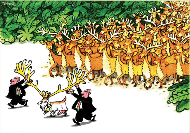 „Велики мајстор” Крстић се клања и наглас диви умећу новог мага. Пред камере су доведени сви Борисови медијски раденици да јавно клече. Било је само питање дана када ће нови поглавица довести идола „жутих” Тонија Блера. И би.