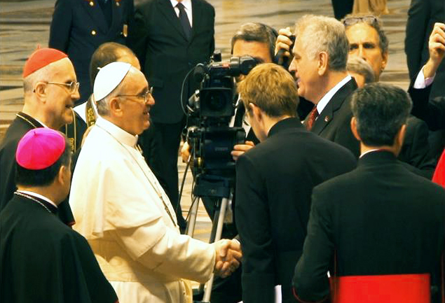 Председник Србије је у свој одлазак у Ватикан вероватно унео позитивне намере за интересе Србије о 1700-огодишњици Миланског едикта и, можда, потребу да нови папа Франциск посети Србију до јесени ове године. Интересе да папа посети Србију имају и поједини архијереји Српске православне цркве свесно заборављајући јасне одлуке Светог архијерејског сабора из времена патријараха Германа, Павла и садашњег Иринеја!