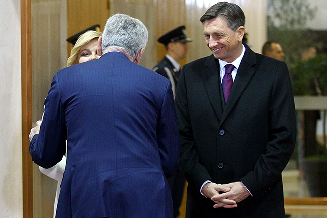 ТА ТРИ пољупца су била куртоазна. Можда и покушај да се узме доминантна позиција, јер је хрватска председниц морала да их отрпи да би самит прошао без инцидената.