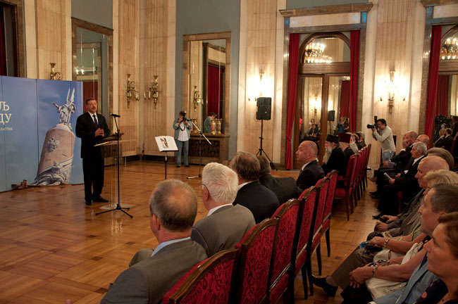 „Уважене даме и господо, драги пријатељи, имам велику част што представљам Россодрудњичество, федералну агенцију која је, поред осталог, овлашћена одлуком Владе Руске Федерације да се бави питањима очувања и рестаурације меморијалних гробаља у Русији и иностранству.