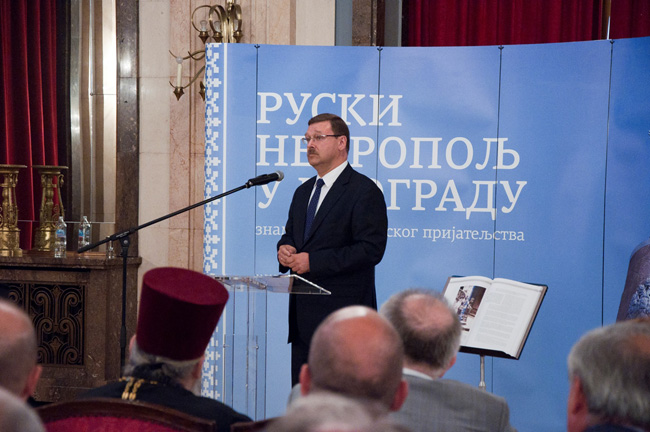 Константин Косачов је и председник Савета Фондације „Руски некропољ у Београду”, а на промоцији књиге је истакао да се обнова Руског гробља у Београду и објављивање књиге остварују под патронатом државе и да је иницијатива потекла од председника Владимира Путина лично. У наставку је нагласио: